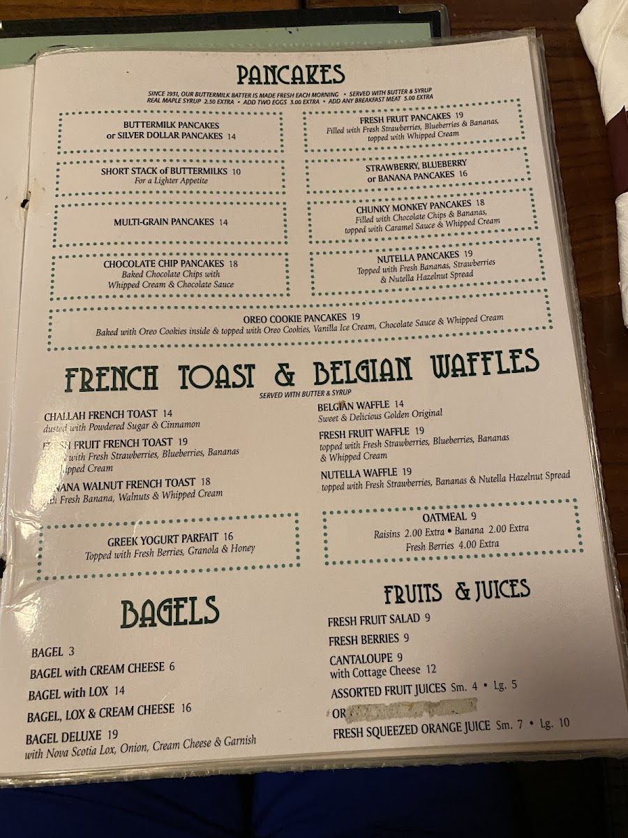 Any style $13.00 | With ham, bacon, sausage, turkey sausage, turkey bacon, Canadian bacon or Taylor Ham $17.00